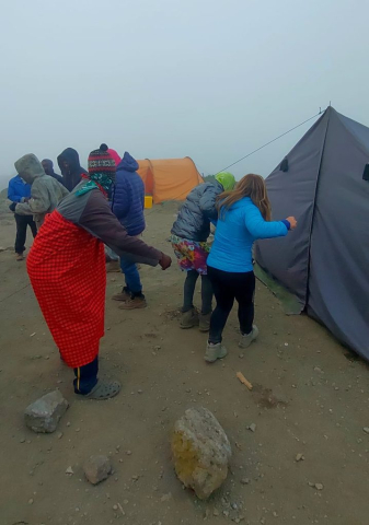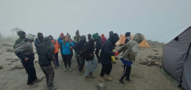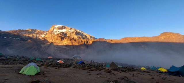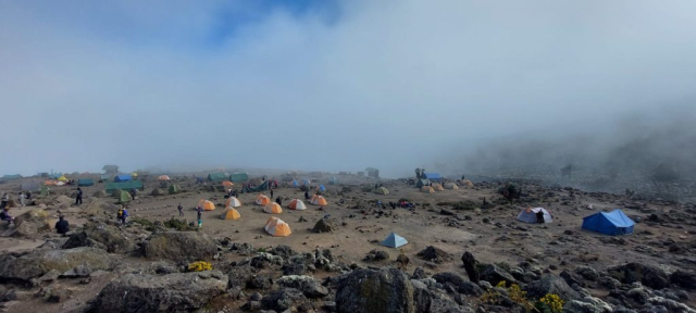 Corturile erau deja montate și apa caldă pregătită. E aproape 17.00 și, după „dușul” la lighean, în cortul de masă ne așteptau popcorn și alune, dar și un termos mare cu ceai de ghimbir. Ședința tehnică are loc mai devreme și aflăm că mâine e bine să plecăm la 07.00 din tabără. Urcăm la Kibo (4700), ne odihnim câteva ore, iar la miezul nopții plecăm #sprevarf.