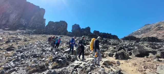 În aproximativ 30 de minute ne punem în mișcare… Trebuie să ajungem în tabăra de la 3900m. Și aici avem parte ca-n viață, și de suișuri, și de coborâri. Doar că în situația de față, ne bucurăm mai mult de coborâre 😀