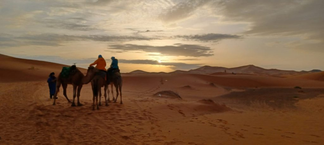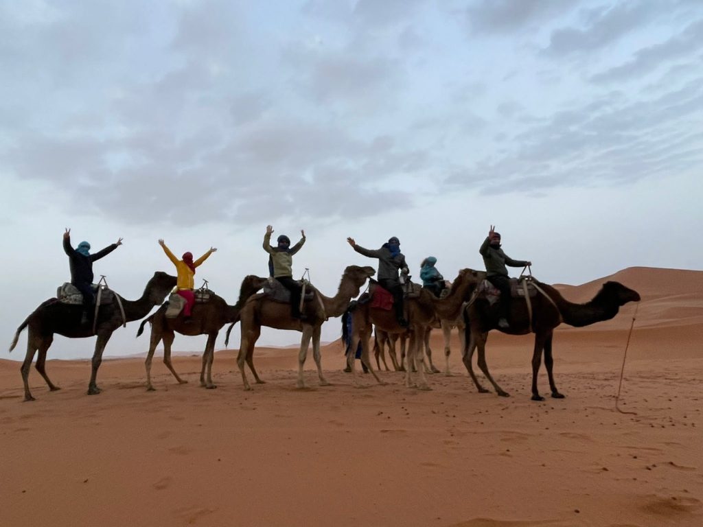 Este deja târziu și din microbus „sărim“ direct pe cămile. Pentru cei care au urcat prima data pe cămilă, emoţiile nu se lasă aşteptate. Cu toate intrucţiunile călăuzelor, tot îţi stă inima în momentul în care se ridică „namila“. De aici, în şir indian sau „monom“ (să vorbim în „limba ghizilor“ :D), pornim într-o călătorie în care suntem uimiţi de frumuseţea simplităţii. Vedem nisip şi nimic mai mult. De fapt, vedem totul: o infinitate de culori, nesfârşitul cerului, dar şi cât de norocoşi suntem că avem ocazia să ne bucurăm de astfel de momente. Privim, glumim, ne ascultăm gândurile şi… o să vedeţi cum stă treaba făcând o astfel de călătorie. Merită! Oricât de frumoase ar fi pozele sau cuvintele aşternute, ele sunt infime faţă de trăirile care te încearcă aici.