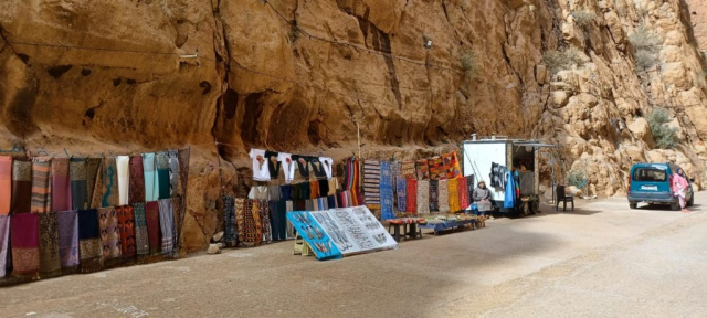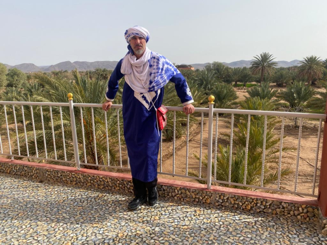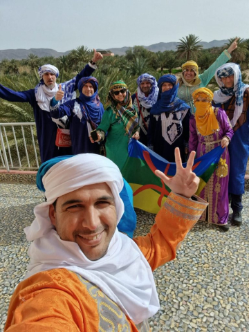 Drumul spre „inima“ Saharei trece, de fiecare data, pe la magazinul de suveniruri și îmbrăcăminte tradițional berberă. Patroana magazinului mă recunoaşte încă de când cu ochii de mine, ceea ce mă bucură că încep să devin unul „de-al casei“. Ne îmbrăcăm şi facem o şedinţă foto, iar cât mai „pierdem“ timpul, ghidul marocan ne spune și povestea culorilor de pe steagul berber care fac referire la formele de relief din zonă: albastru este Oceanul, verdele sunt oazele, iar galbenul este simbolul deşertului. Semnul din centru este omul liber: berber/amazigh