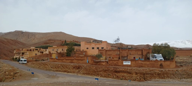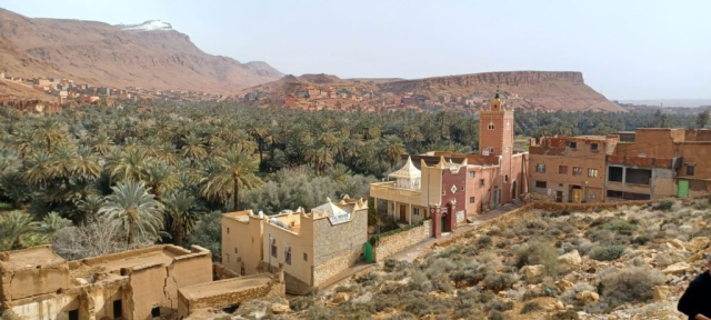 Drumul spre deşert trece prin sate, însă de data asta străzile sunt inundate, la fel si plantațiile de palmieri. Zilele trecute, când a nins la altitudine,pe-aici a tot plouat.